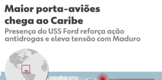 Maior porta-aviões do mundo fica mais próximo da Venezuela e intensifica...