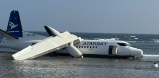 Avião com 55 pessoas sai da pista e para no mar...