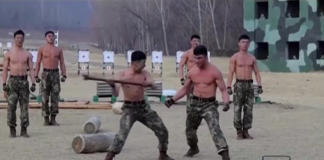 Kim Jong-un assiste a soldados quebrando tijolos com a cabeça e...
