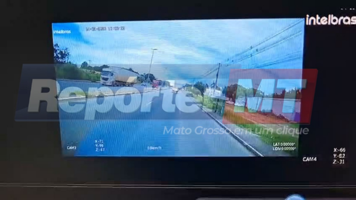Uma câmera de segurança registrou o acidente que resultou na morte de Camila Carmem de Oliveira da Silva, de 27 anos, na tarde dessa terça-feira (24), em Cuiabá.