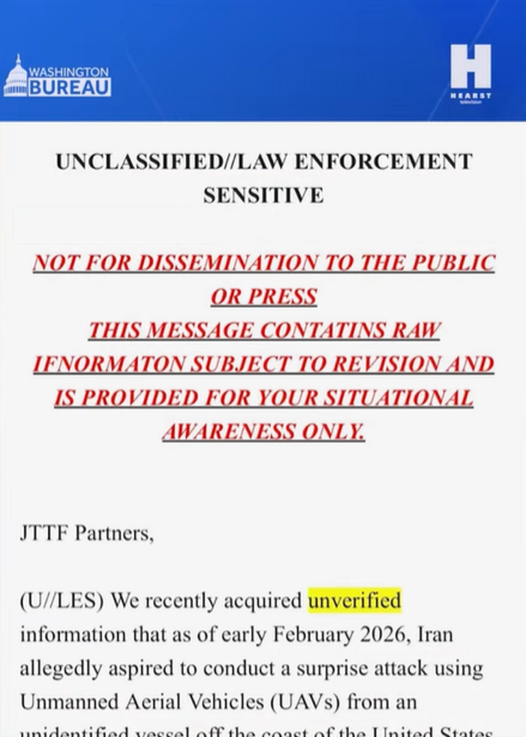 Embora o FBI tenha alertado autoridades locais sobre a possibilidade de um ataque com drones, o próprio documento classifica as informações como não verificadas e não apresenta detalhes sobre alvo, método ou data de um eventual ataque.