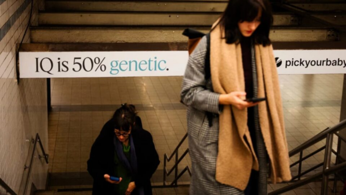Os anúncios espalhados pelas estações de metrô continham frases como “Tenha o seu melhor bebê”, “O QI é 50% genético” e “Esses bebês têm ótimos genes” apontando para uma página que em português seria traduzida por “escolha seu bebê ponto com”. Imagens de bebês sorrindo estampavam os vários anúncios em destaque em um dos locais mais movimentados do mundo.