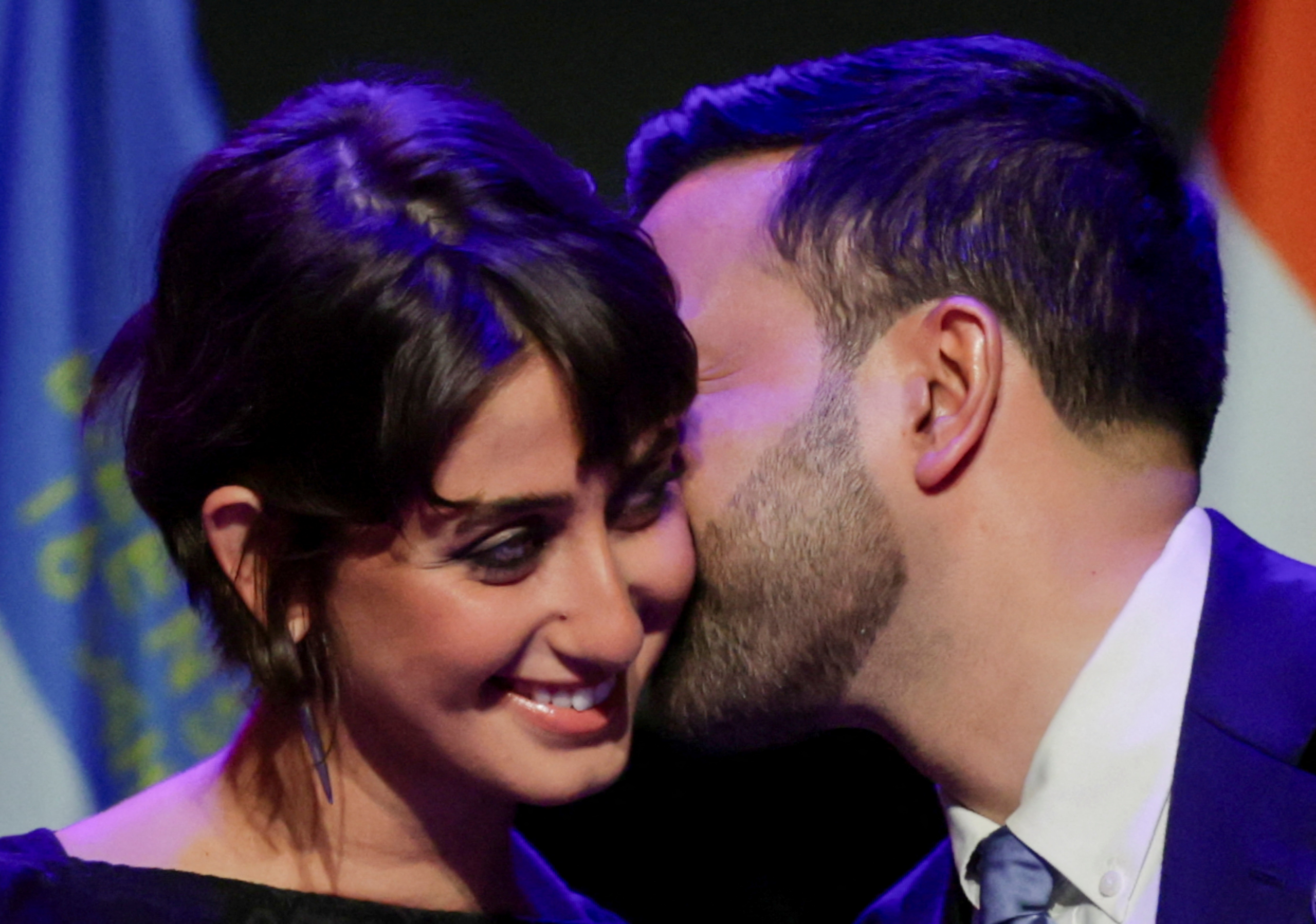 Zohran Mamdani beija sua mulher, Rama Duwaji, após vitória nas eleições para a prefeitura de Nova York