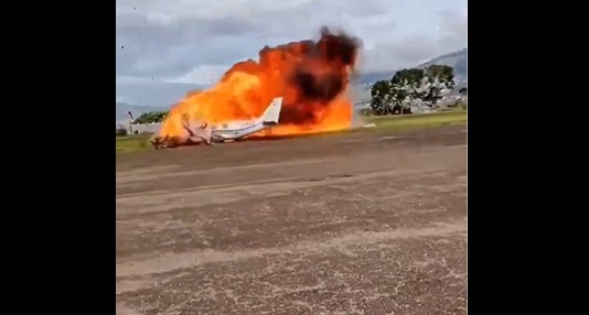 VÍDEO: Avião pequeno tenta decolar, capota e explode em solo na Venezuela