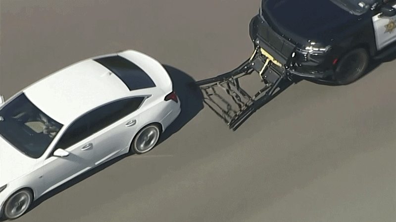 Após uma hora de perseguição, os policiais decidiram usar uma viatura com um dispositivo de imobilização e o carro do suspeito perdeu o controle, colidindo contra o muro de concreto de uma residência do bairro Jurupa Valley.